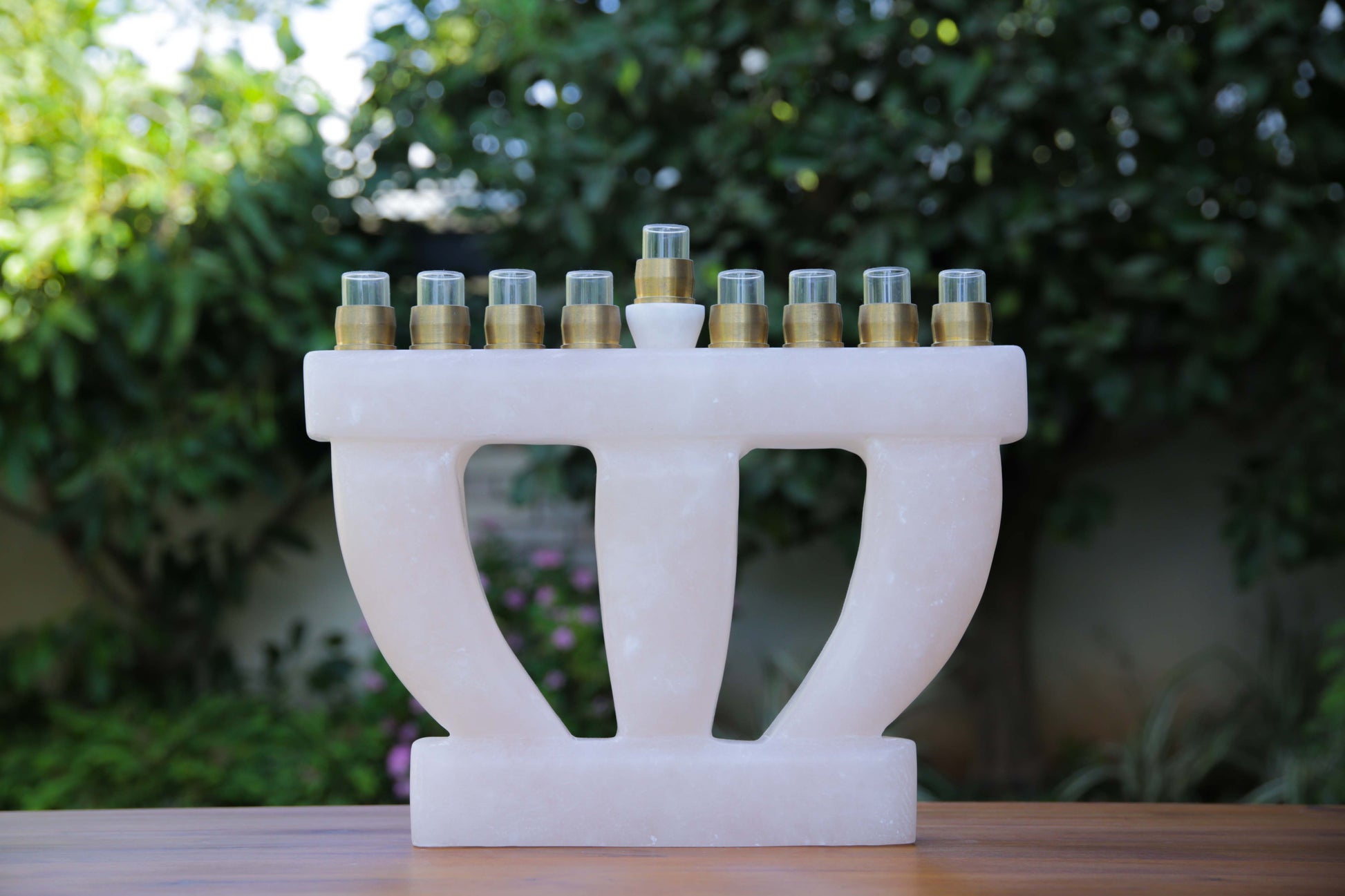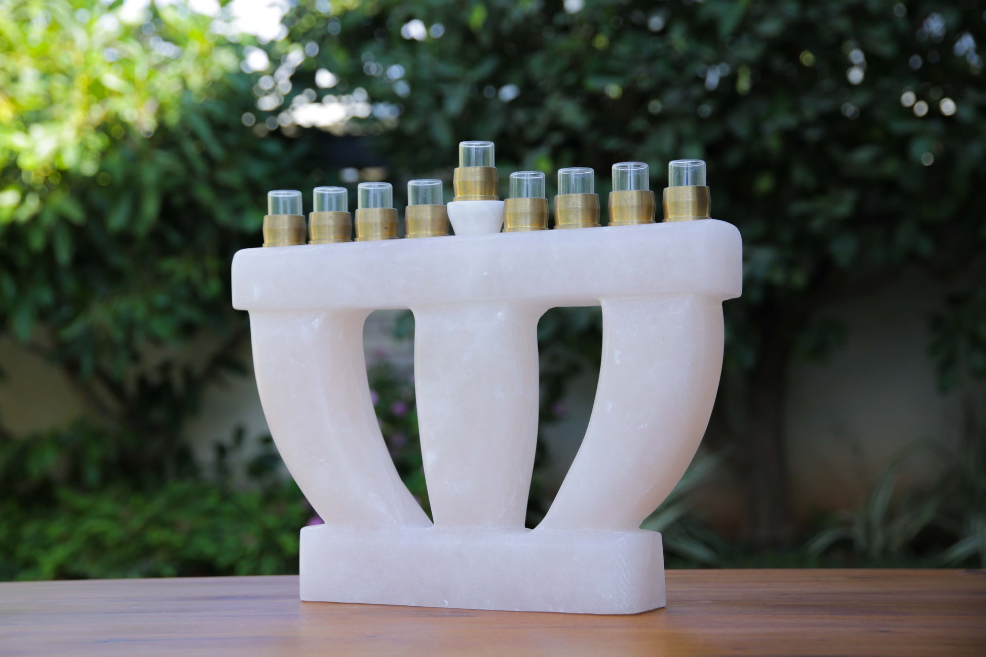 חנוכייה ייחודית בעבודת יד, עשויה מאבן אלבסטר טבעית. יצירה חד-פעמית שמשלבת אומנות, יוקרה וקדושה, המוסיפה אור ואלגנטיות לחג החנוכה. ארץ מוצא דרום אמריקה.