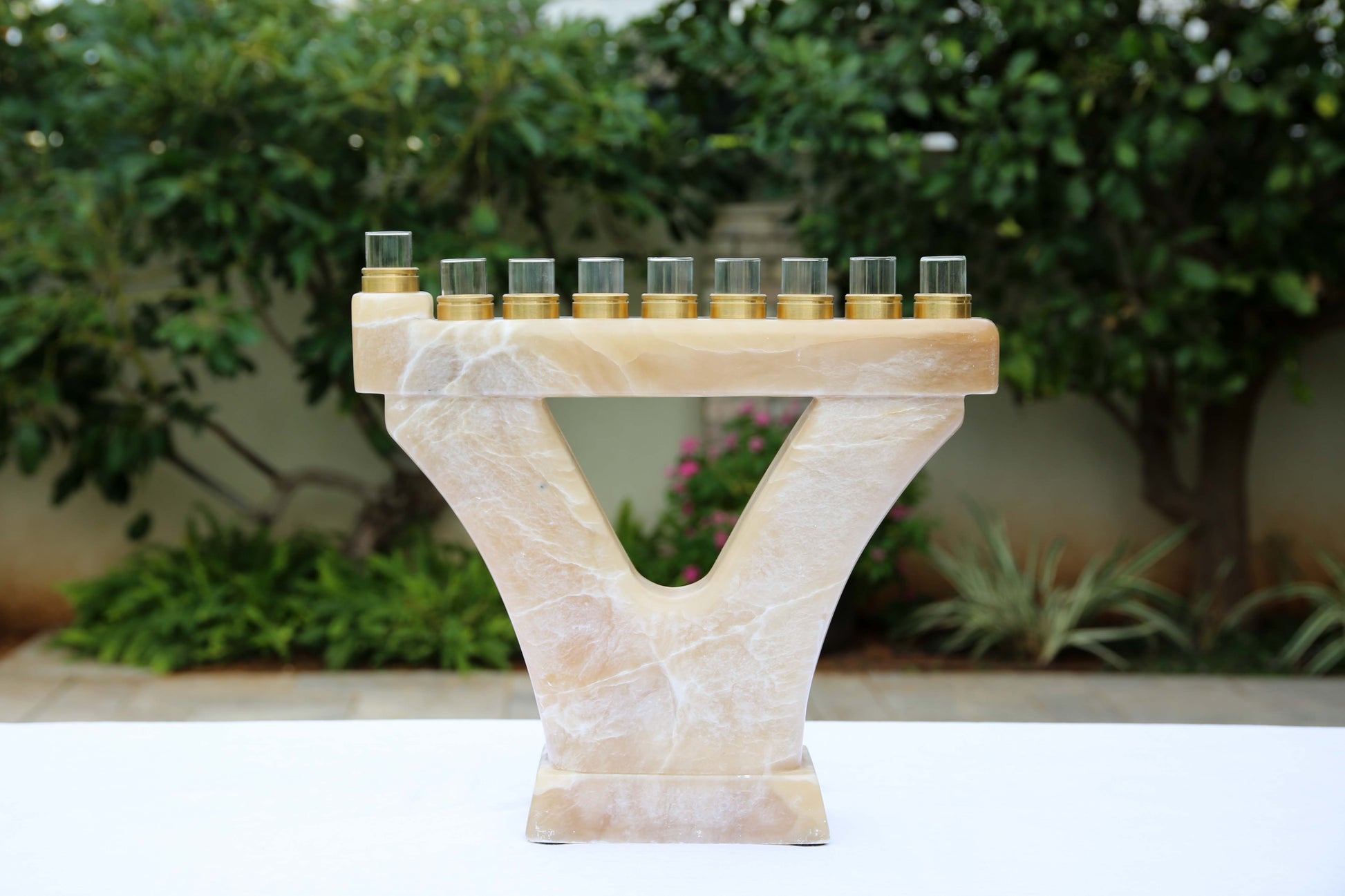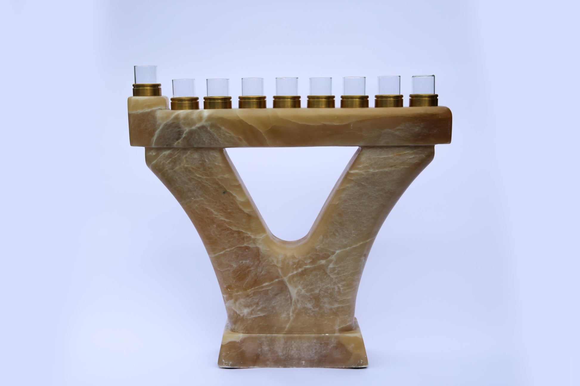 חנוכייה ייחודית בעבודת יד, עשויה מאבן אלבסטר טבעית. יצירה חד-פעמית שמשלבת אומנות, יוקרה וקדושה, המוסיפה אור ואלגנטיות לחג החנוכה. ארץ מוצא דרום אמריקה.