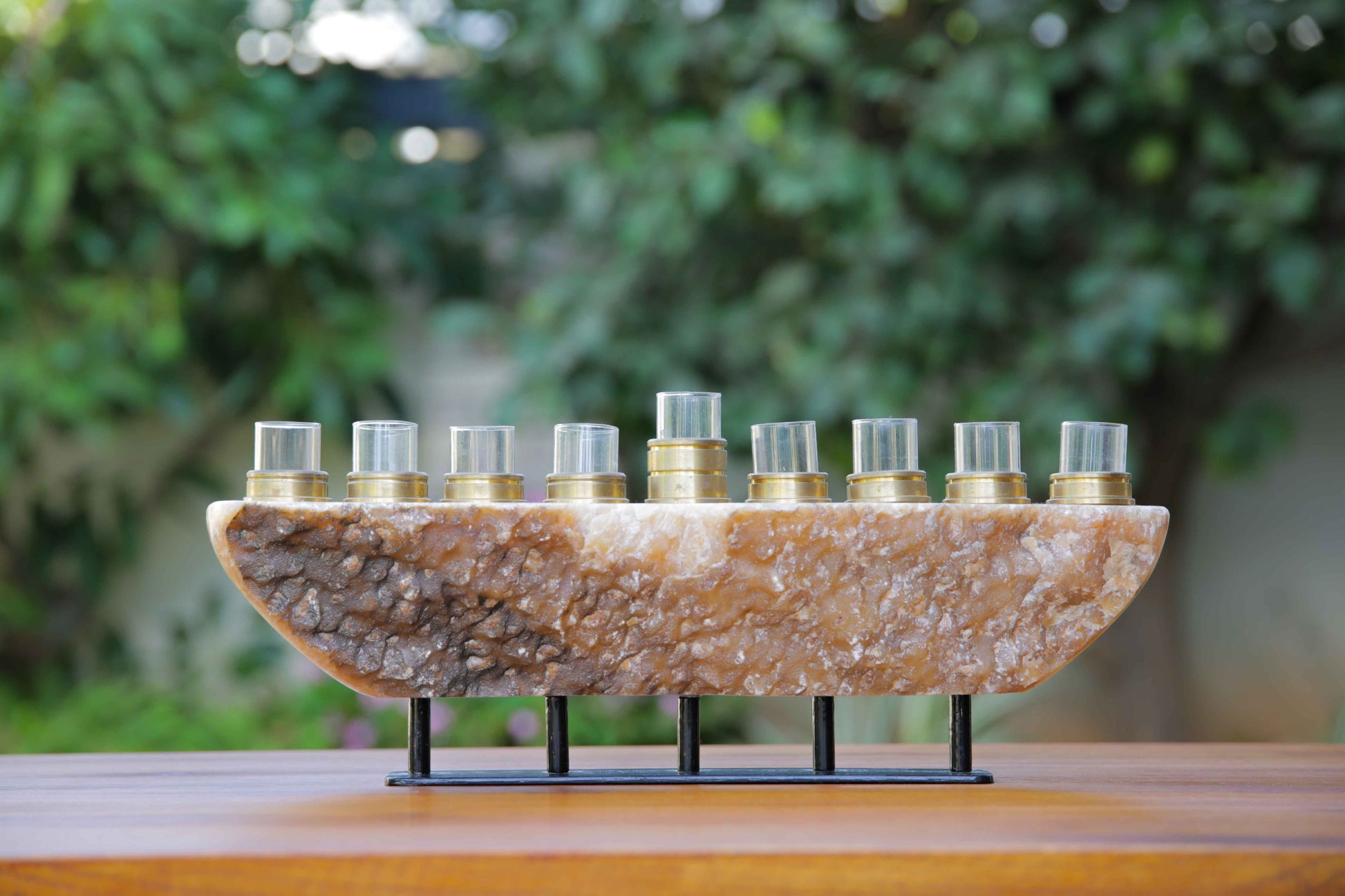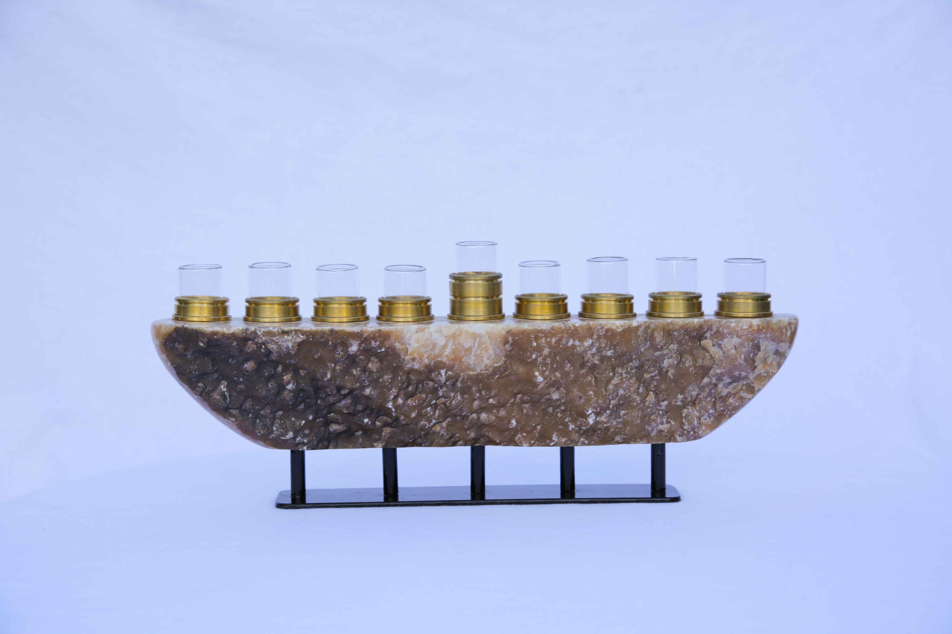 חנוכייה ייחודית בעבודת יד, עשויה מאבן אוניקס טבעית. יצירה חד-פעמית שמשלבת אומנות, יוקרה וקדושה, המוסיפה אור ואלגנטיות לחג החנוכה. ארץ מוצא וייטנאם.